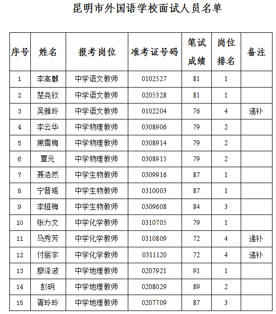 昆明市外國語學(xué)校2019年公開招聘工作人員面試公告