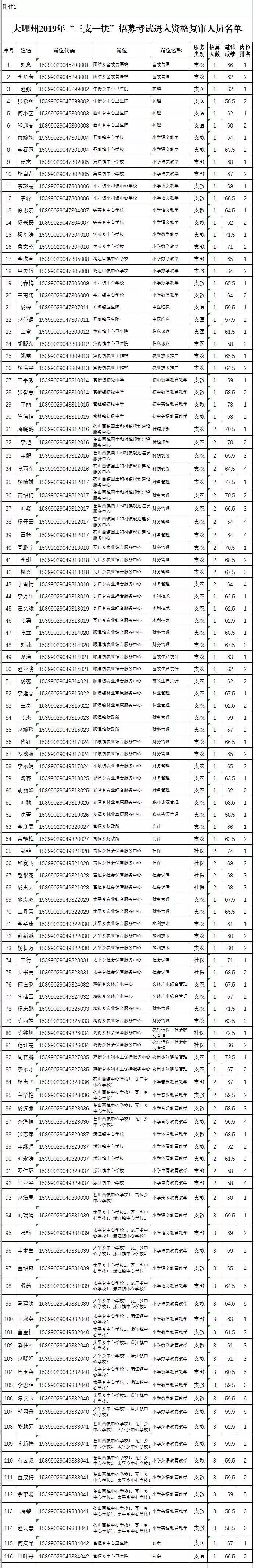 大理州2019年 “三支一扶” 人員招募資格復審、面試及體檢公告
